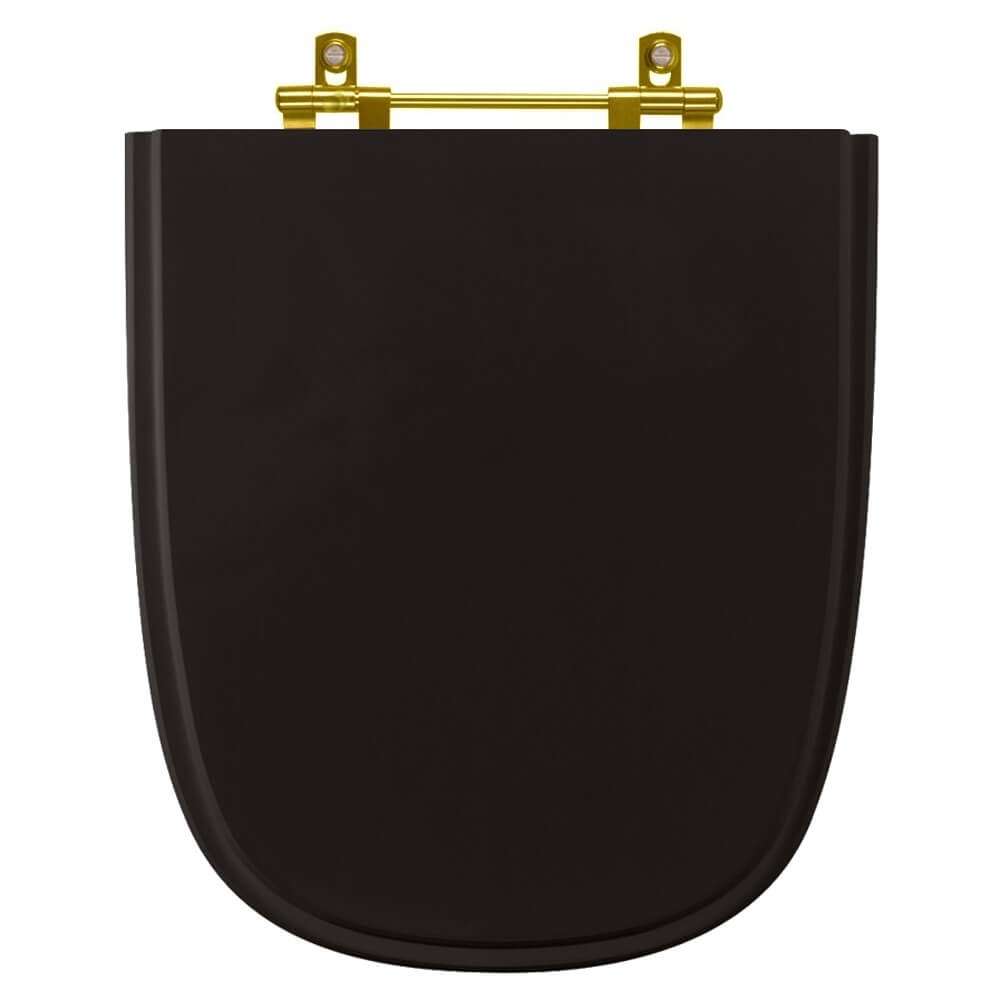 Tampa De Vaso Poliéster Ibiza Preto Com Ferragem Dourada é a escolha perfeita para seu banheiro. O Assento Sanitário Poliéster é considerado o melhor tipo de assentos sanitários do mercado pelo seu acabamento impecável e excelente durabilidade.