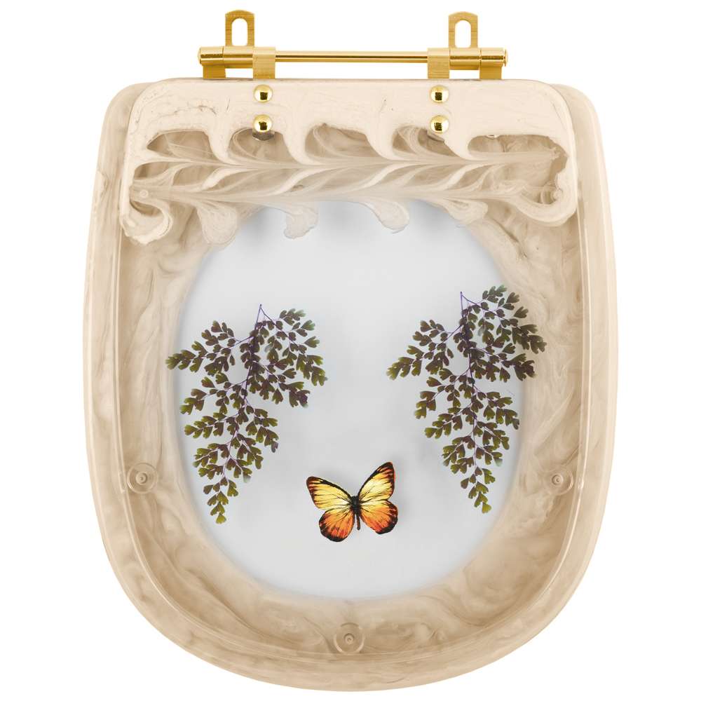 Tampa de Vaso Sanitário Poliéster Sabatini Bege Decorado Borboleta B3 para bacia Icasa Com Ferragem Dourada, inovação com qualidade para o seu banheiro. Esta Tampa de Vaso é fabricada 100% em Resina Virgem de Poliéster. É impermeável, ultra resistente, tem acabamento brilhante e ferragem dourada que não enferruja. É compatível para uso em louça sanitária com ou sem caixa acoplada.