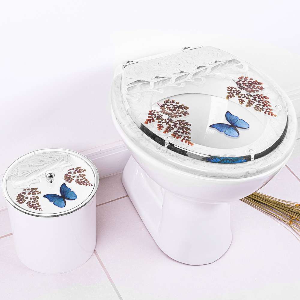 Kit Assento Sanitário Poliéster Convencional Branco e Lixeira Branca com decoração de Borboleta Azul é a escolha perfeita para completar seu banheiro. Com acabamento diferenciado, este conjunto combina perfeitamente com o banheiro.