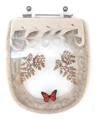 Tampa de Vaso Sanitário Poliéster Sabatini Decorado Borboleta Vermelha Cristal e Areia para bacia Icasa é a escolha perfeita para seu banheiro trazendo beleza e praticidade.