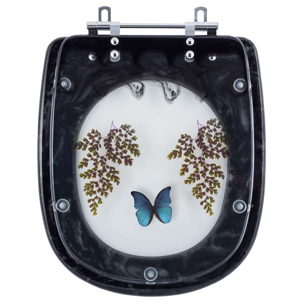 Tampa para Vaso Icasa Sabatini Preto com Borboleta Azul é a escolha perfeita para seu banheiro. O Assento Sanitário Poliéster é considerado o melhor tipo de assentos sanitários do mercado pelo seu acabamento impecável e excelente durabilidade.